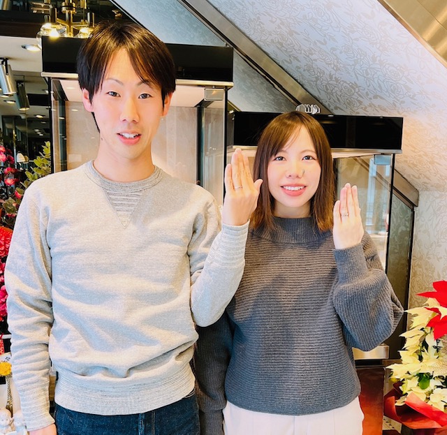 ピンクゴールドの優しい色とプラチナのコントラストがとても美しく、寄り添うような素敵なデザインは、お二人のようです。✨✨
