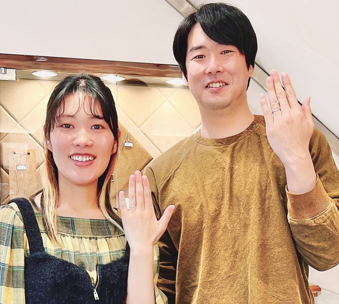 素材はお揃いのプラチナを、内側にはお二人だけの刻印を刻んだ一組だけのご結婚指輪となって仕上がって参りました。