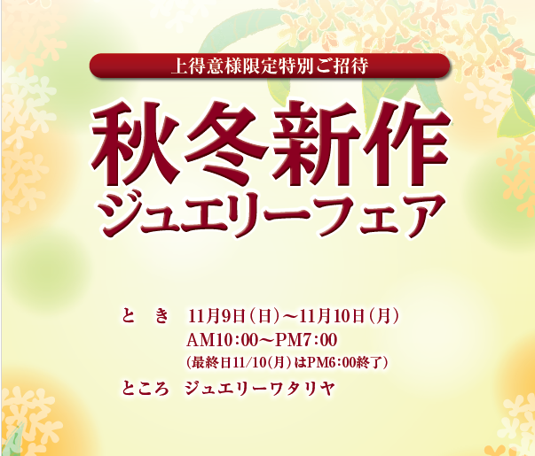 秋冬新作ジュエリーフェア開催のお知らせ 11/9(Sun.)~11/10(Mon.)